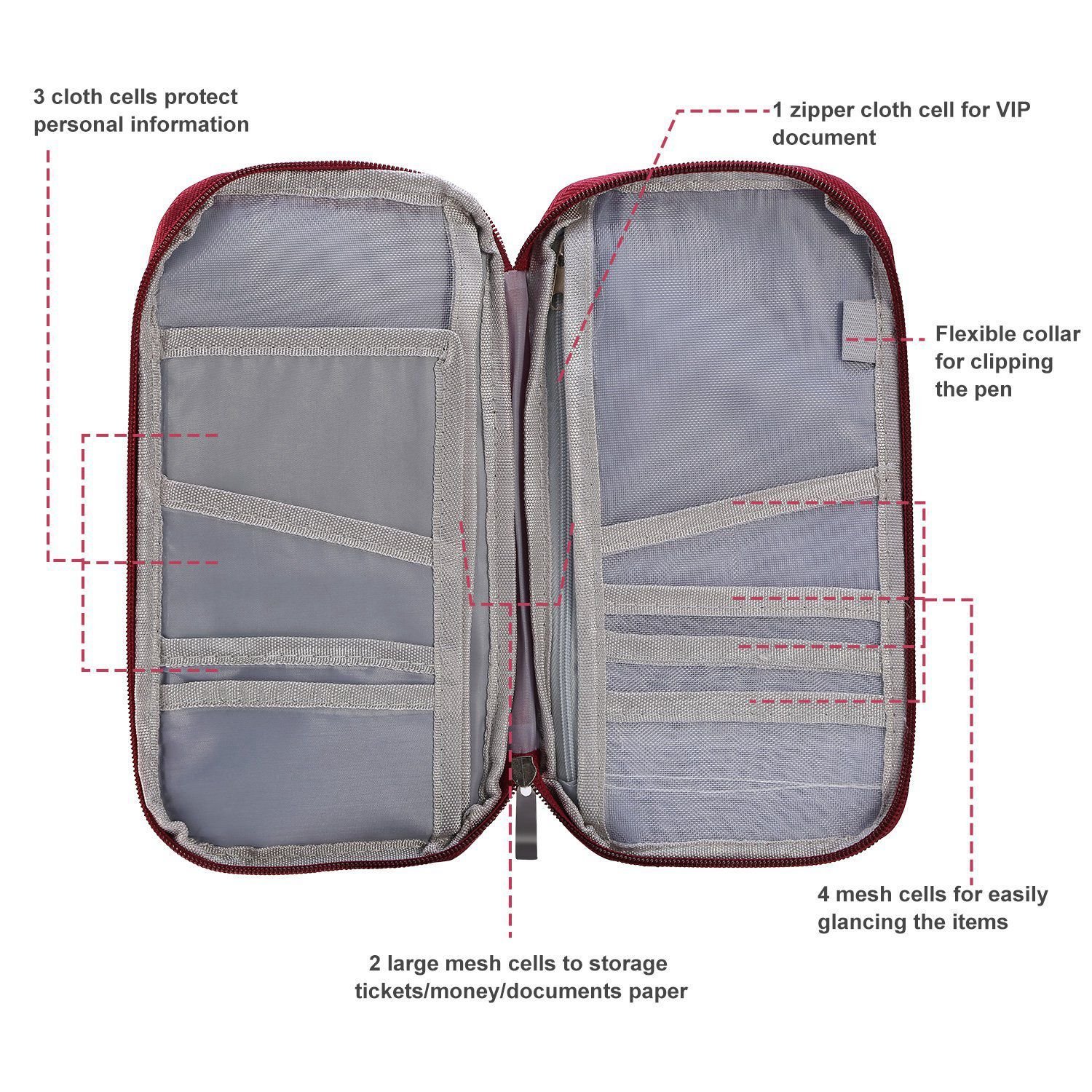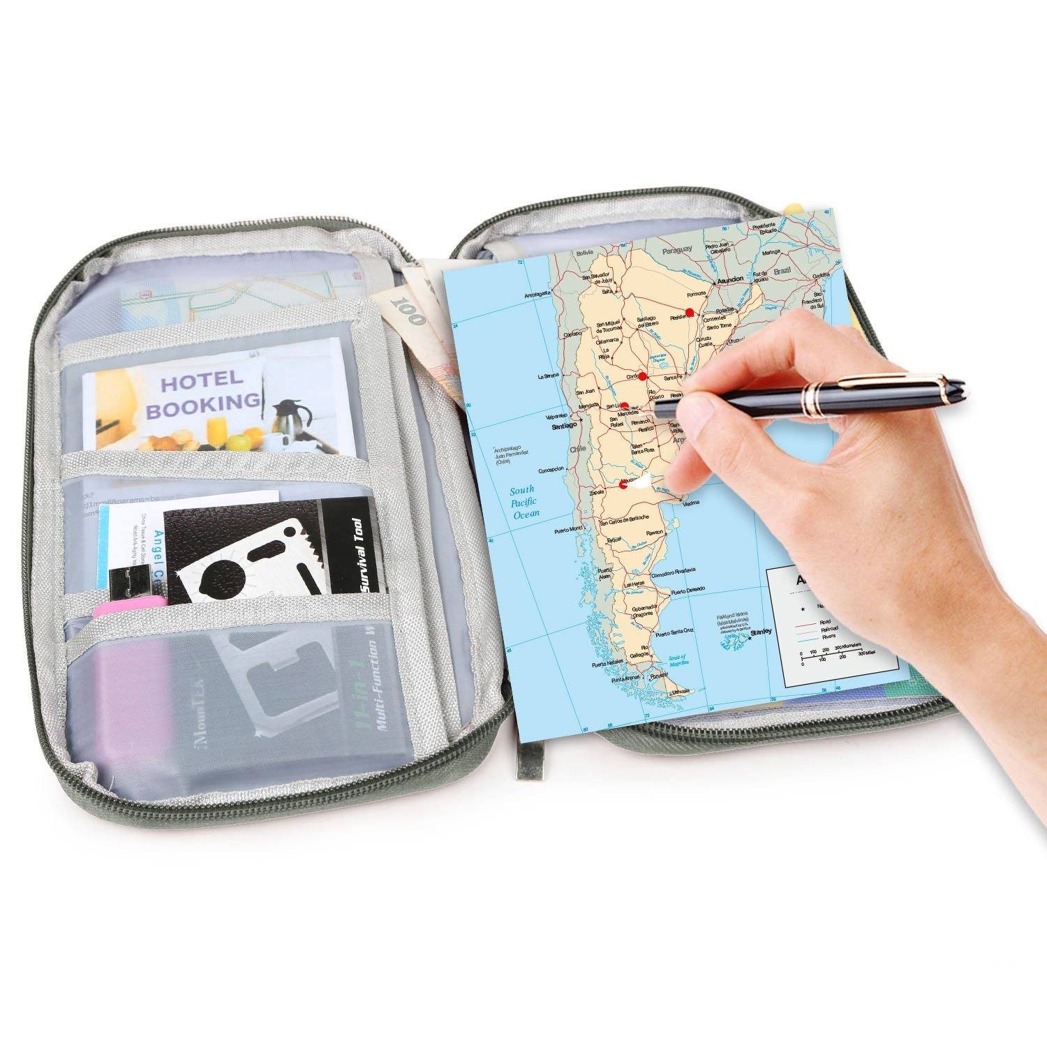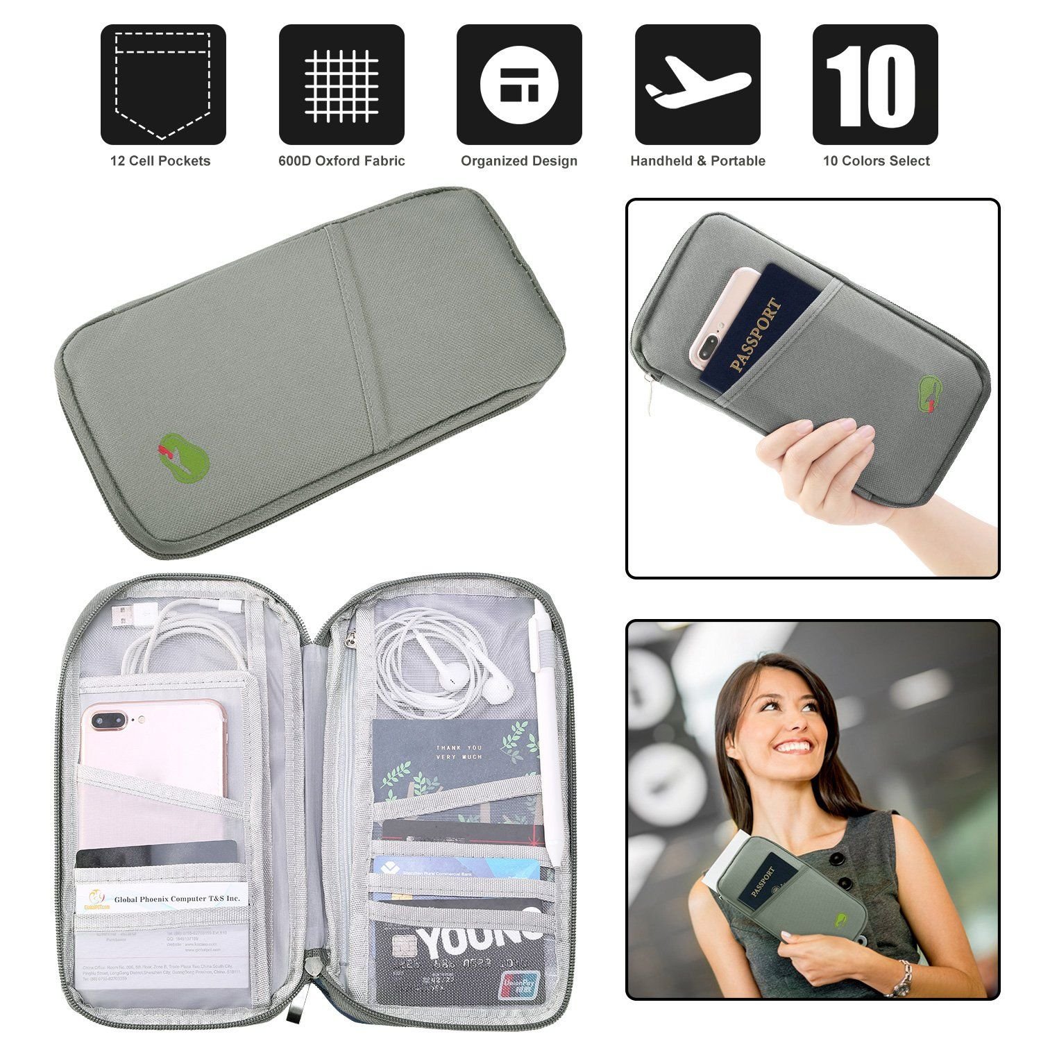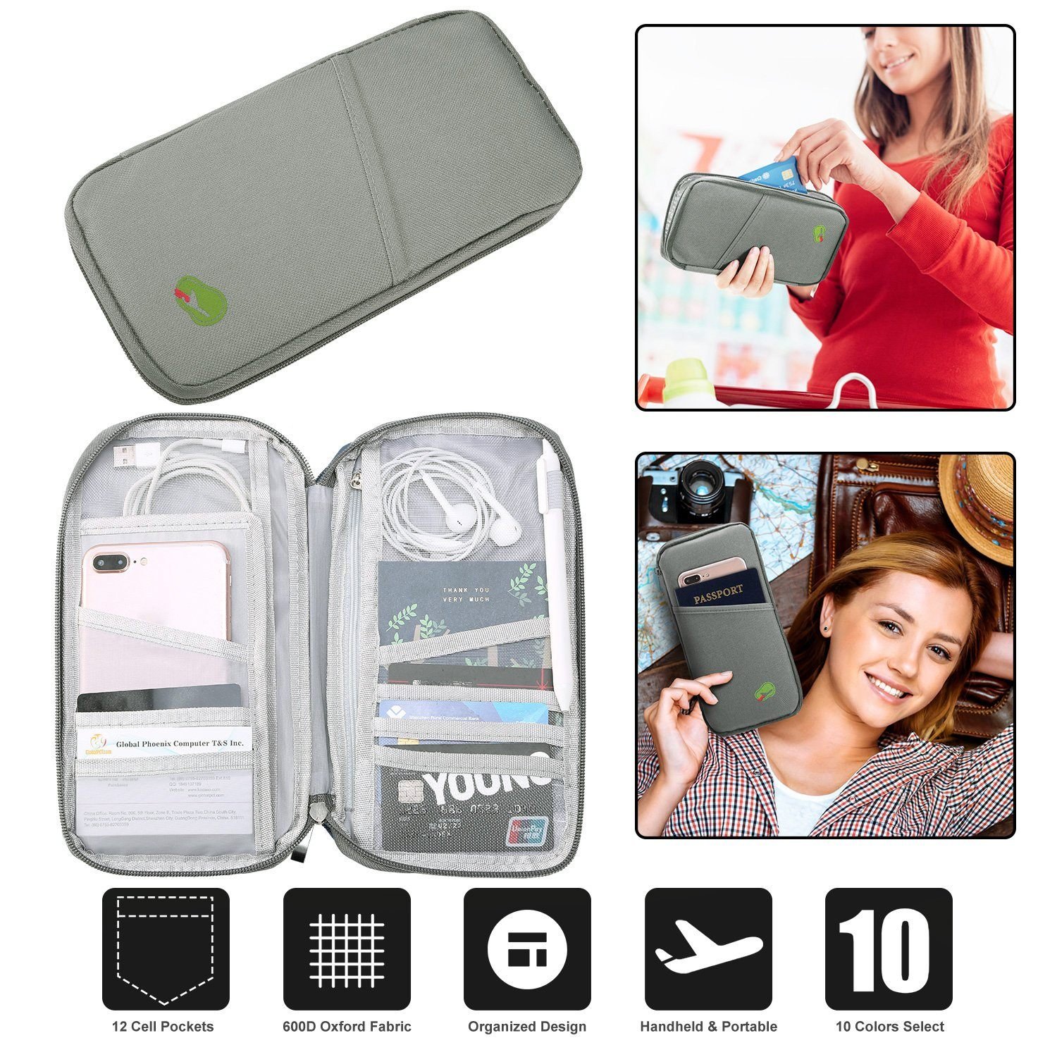 - Thoughtful Outside Storage Cell: A cell on the front of travel wallet for phone or any other thing often use. 4.5inches wide of cell slots are designed to accommodate phones. tickets etc. Bring much convenience for your trip or daily life.