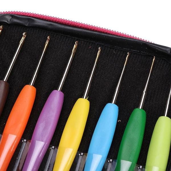 16Pieces Colored Crochet Hooks Yarn Aluminum Knitting Needles Set Tool Kit with Box.