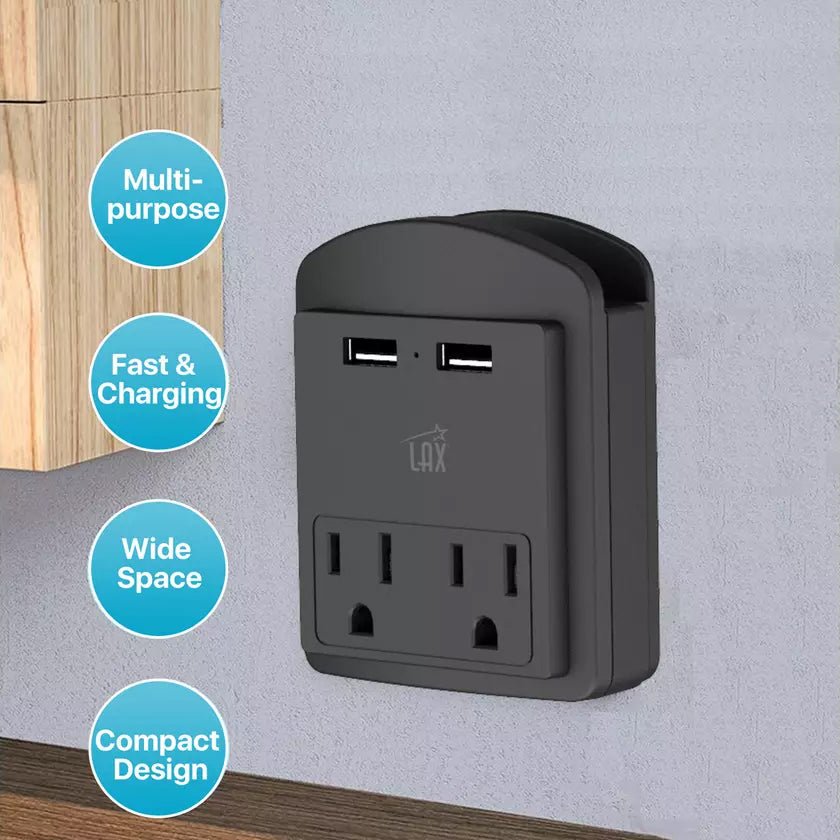 The multi-plug outlet with USB ports offers two outlets and two USB-A ports. Whether a smartphone. laptop. camera. or any other electronic device. you can use this premium quality wall outlet extender to charge and install more than one device simultaneously.This electric outlet extender is also a USB wall charger. Two USB ports automatically detect charging devices and deliver optimal charging speed. Therefore. with this outlet extender. you can charge your devices quickly.