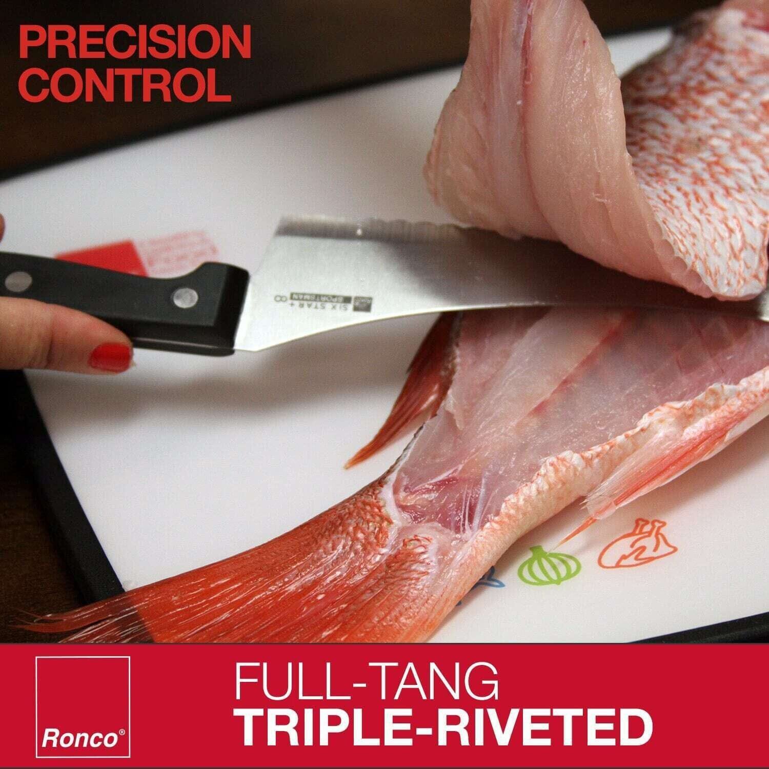 - FULL-TANG HANDLE: All Ronco knife blades extends the length of the handle to ensure strength and durability.