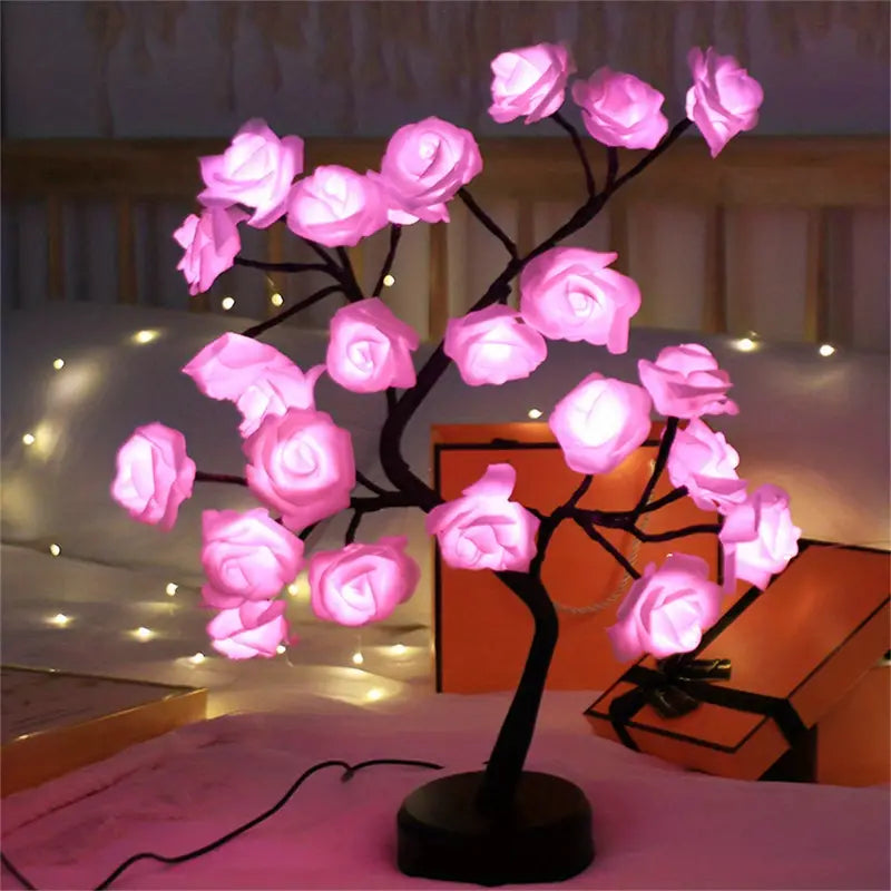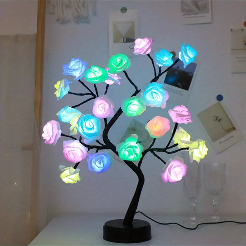 24 LED RGB 16 Colors Rose Tree Night Light Battery And USB Plug Operated Rose Flower Fairy Lights Remote Control