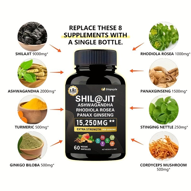 2pcs, 7000mg Sea Moss Plus 4000mg Black Seed Oil, 2000mg Ashwagandha, 9000mg Ginger & Shilajit, 1000mg Rhodiola Rosea, 1500mg Panax Ginseng – All-in-One Supplement, No Allergens
