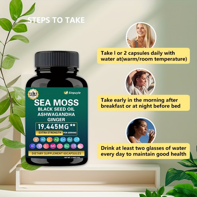 2pcs, 7000mg Sea Moss Plus 4000mg Black Seed Oil