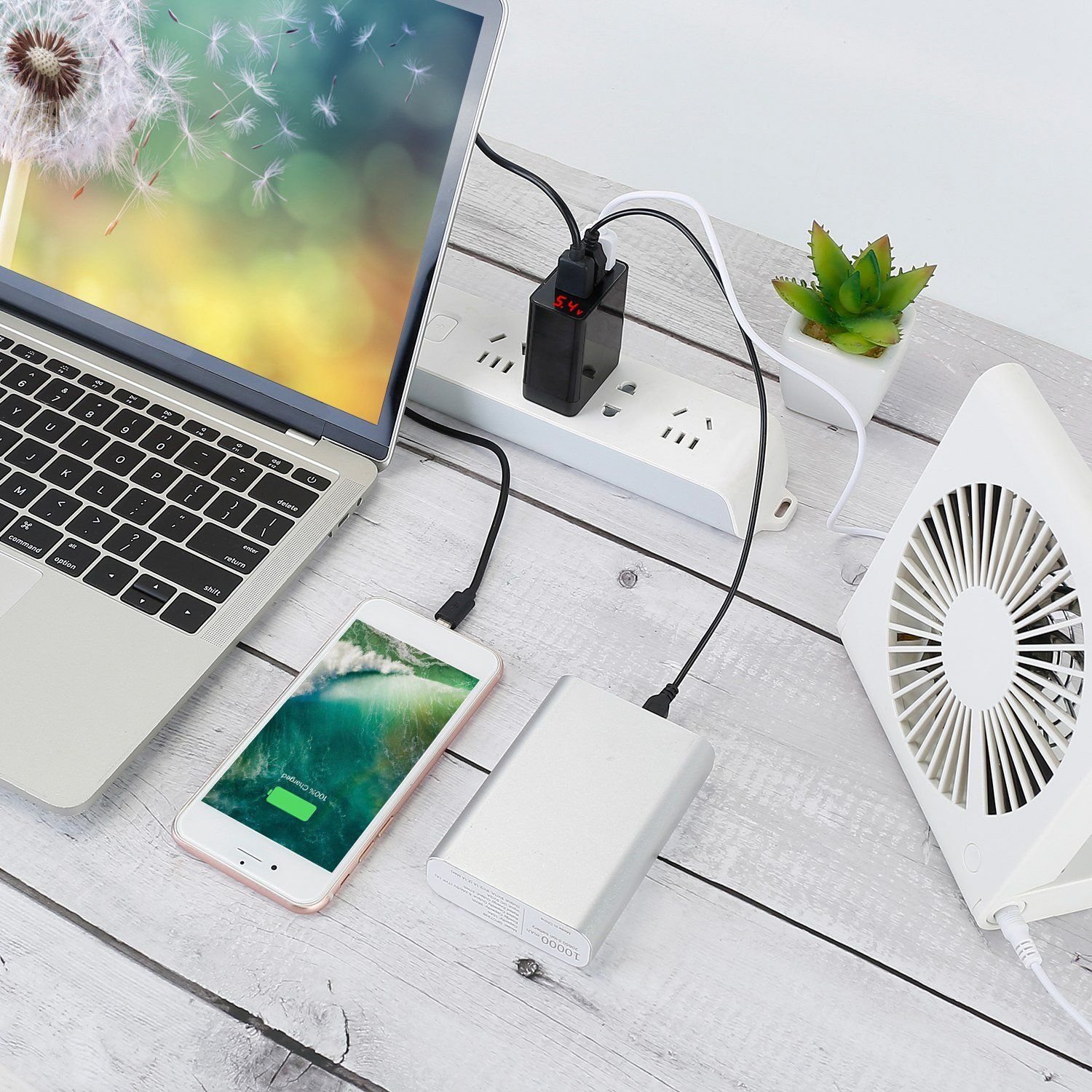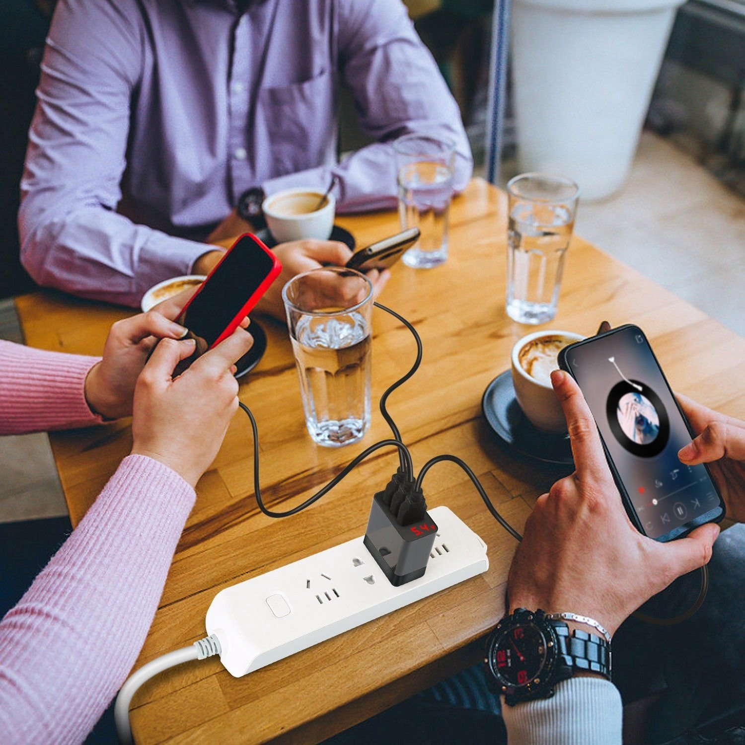 - Safe & Durable: A combination of multi-safety protection. protect your devices from over-current/over-heating/over-charging and more. Adopt high-quality fireproof ABS materials. smart technology wall charger ensures the safe efficient charging. Extra display allows you to see the voltage and current while using the charger adapter.