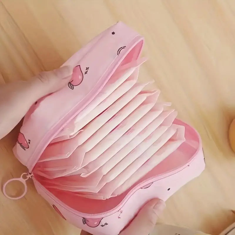 This sanitary napkin storage bag comes with a lovely design that is easy to carry around.