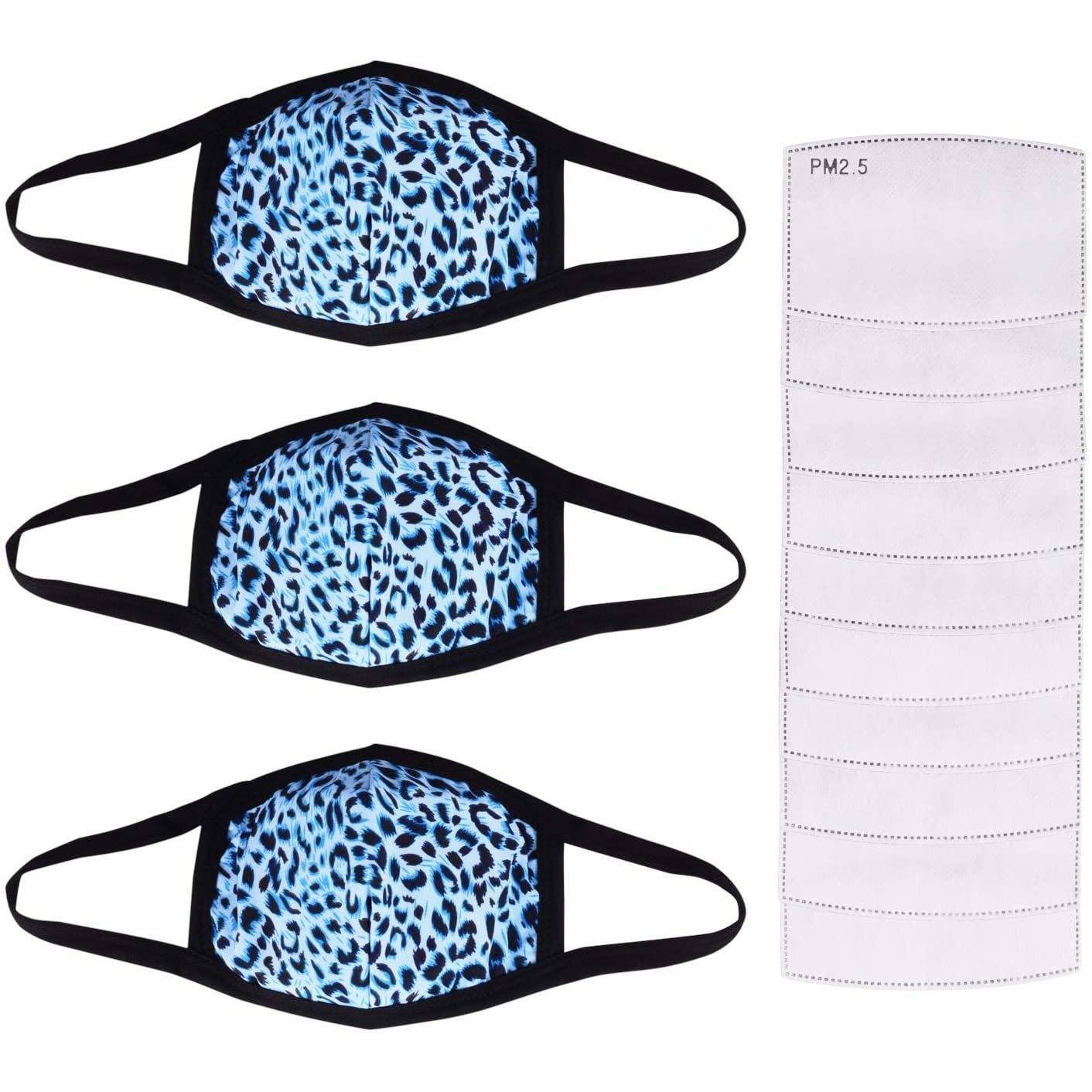 3-Pack: Adult Cotton Reusable Face Masks with 10 Filters