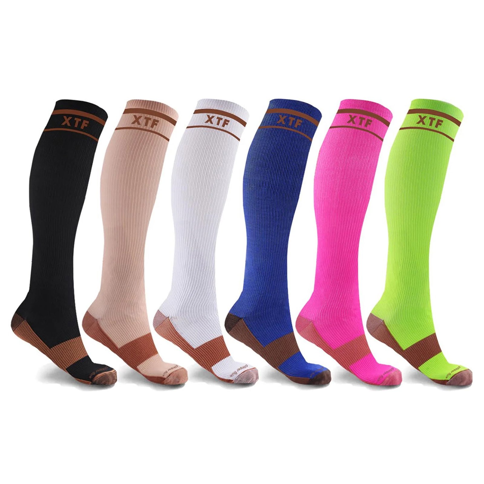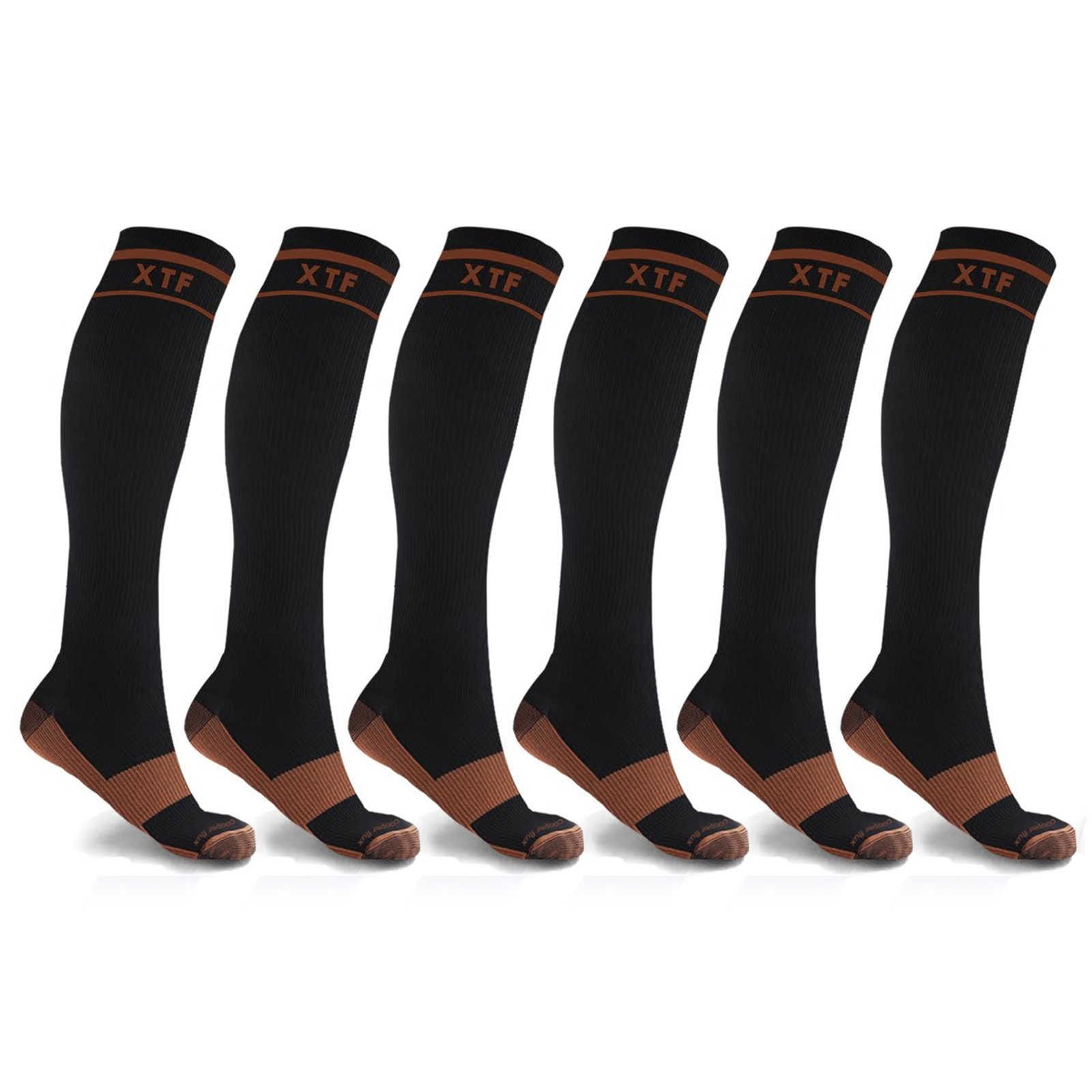 6-Pairs: Unisex Copper-Infused Knee High Compression Socks