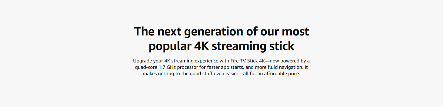 - Advanced 4K streaming – Elevate your entertainment with the next generation of our best-selling 4K stick, with improved streaming performance.