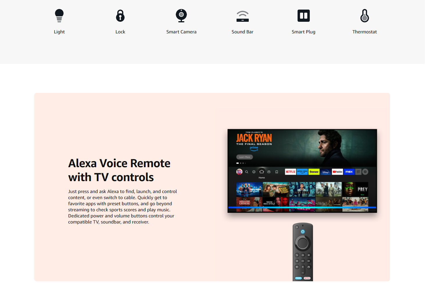 - Do more with your smart home – Control compatible devices like cameras, lights, and more with your remote. Press and ask Alexa to check the weather or dim the lights.