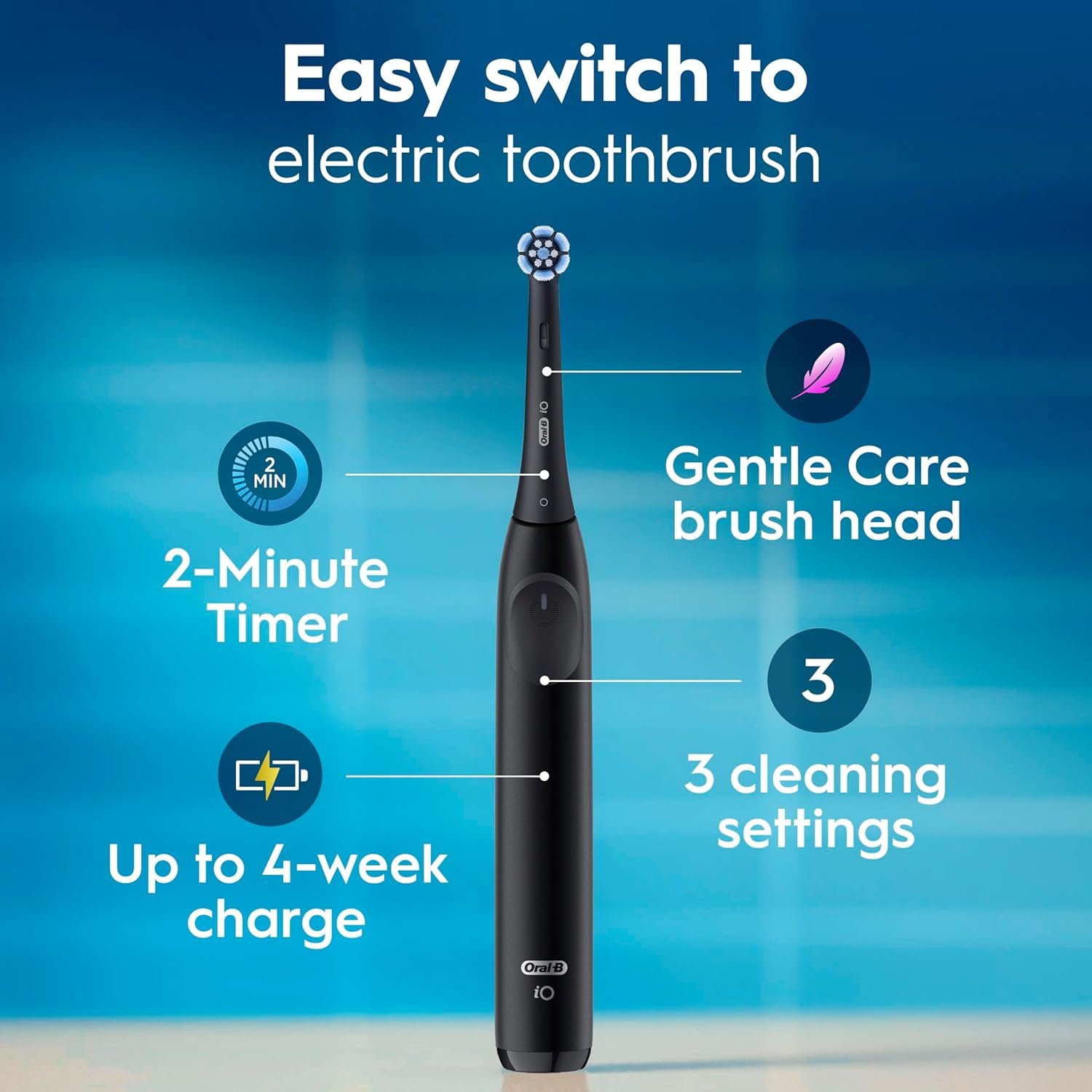Compatible with all Oral-B iO replacement brush heads: Ultimate Clean, Gentle Care, Whitening, Professional Clean.