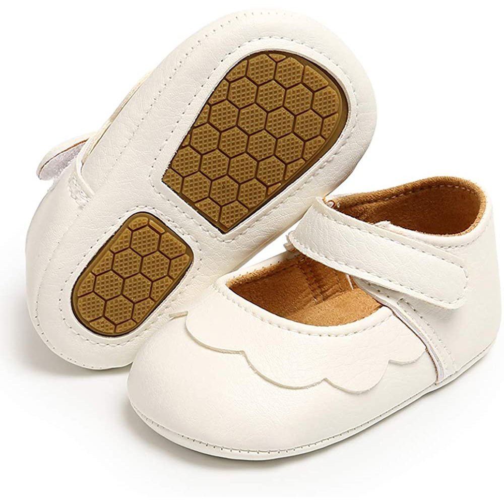 - An Adjustable Hook and Loop Closure Makes Our Infant Flats Easy to Put on. Take off. and Stay on Your Baby’s Feet.