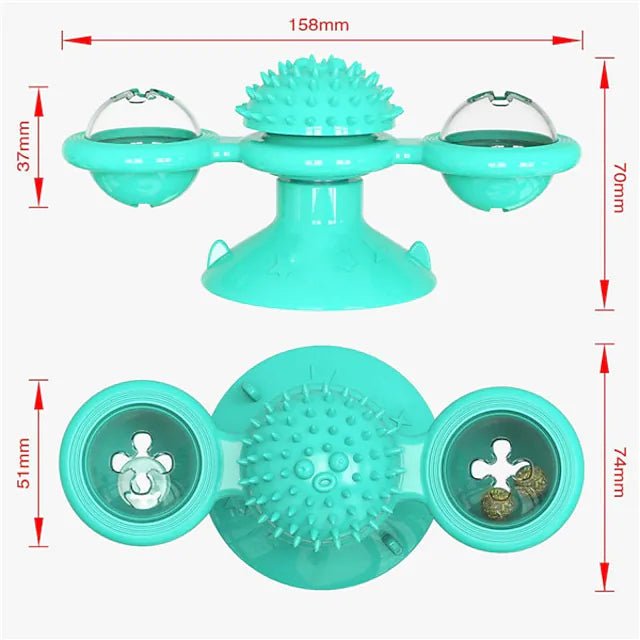 • Clean Teeth: When the cat is playing. you can squeeze the cat’s toothpaste onto the friction device in the middle of the windmill toy. which effectively help the cat to clean the teeth in depth and maintain oral health.