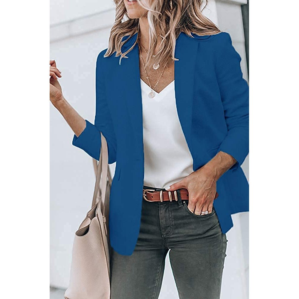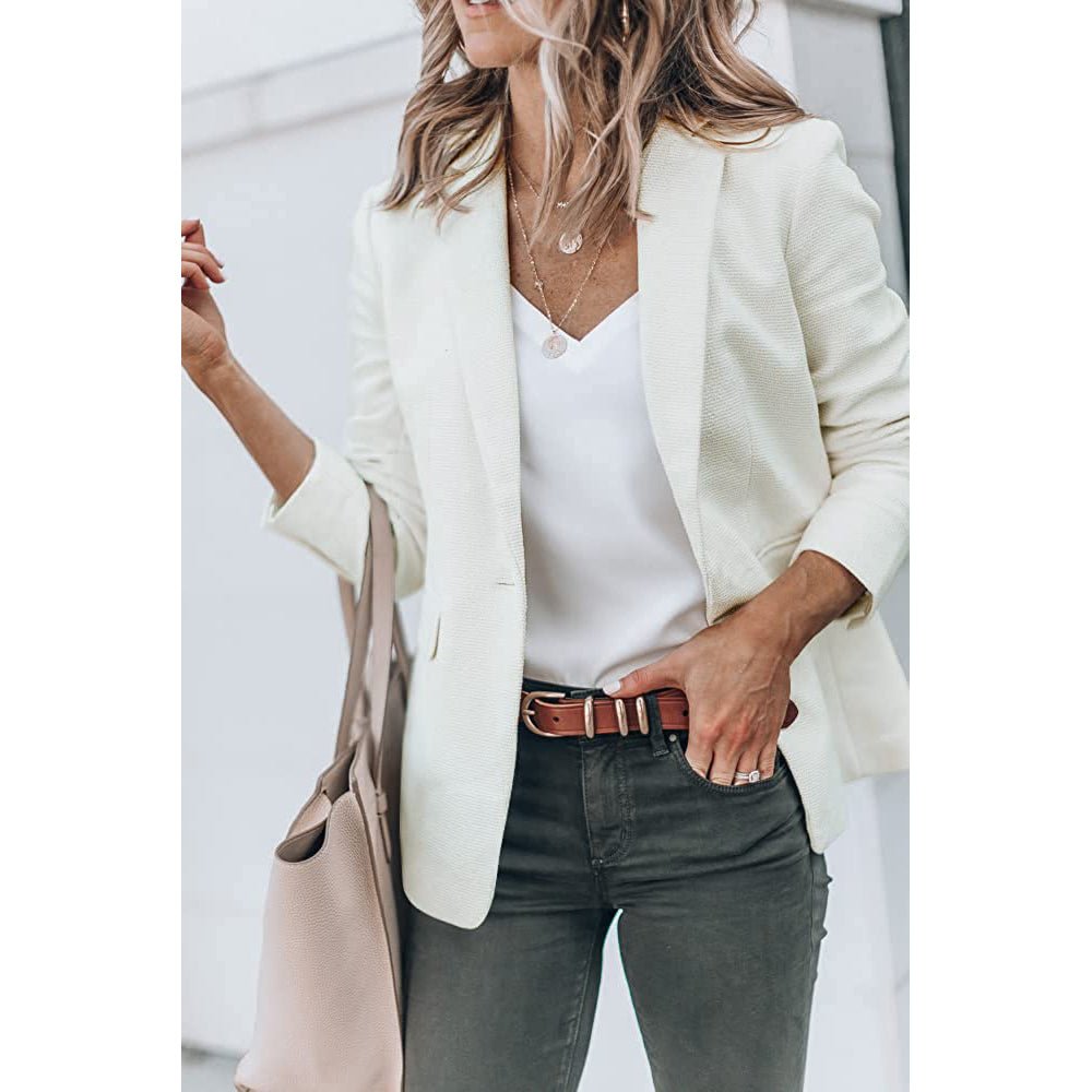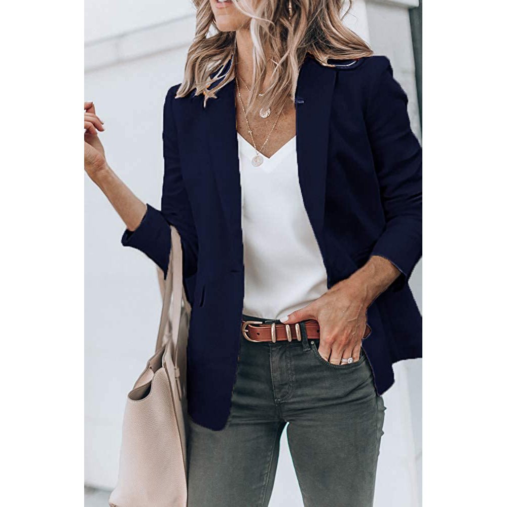 - Basic lapel collar blazer jacket for women. a single front button design. two functional flap pockets. perfectly carrying some necessity. or nailing a chic look.