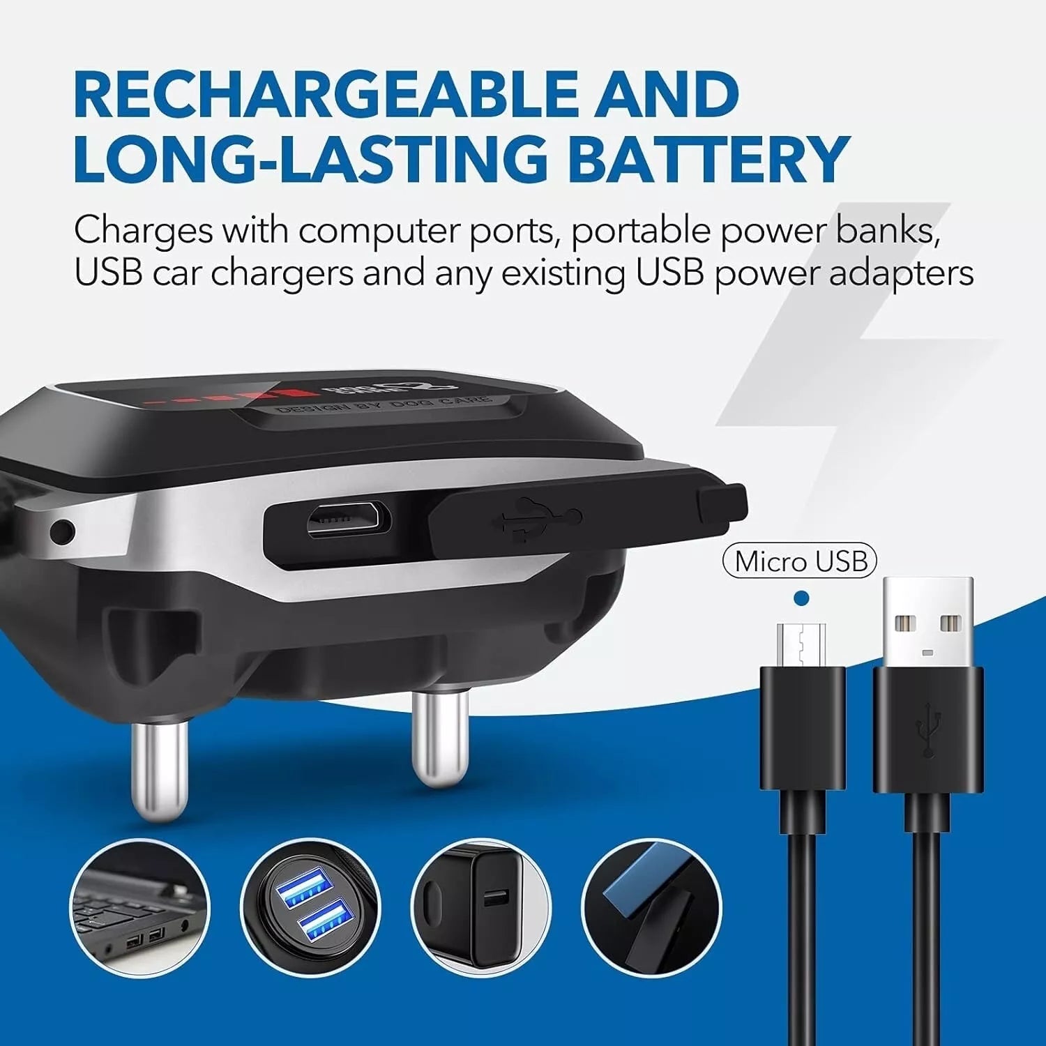 • Rechargeable Battery with Extra Long Standby Time: There is an intelligent power-saving design so that our bark collar can last for a long time. With a micro USB cable. you can also find a place to charge the collar easily. The LED lights show battery power level. You can train your dog outside without worrying about the sudden power off.