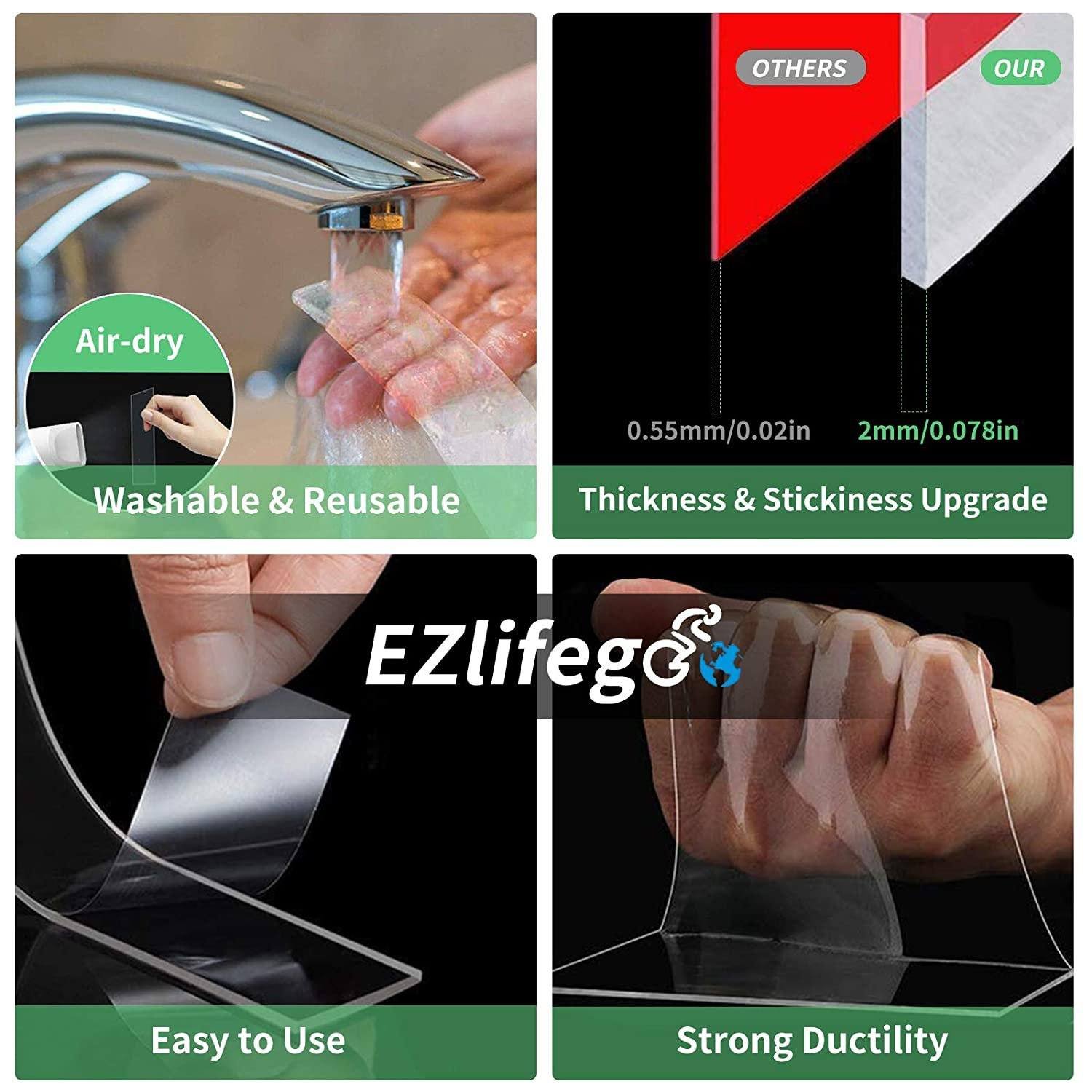 EZlifego Double Sided Tape Heavy Duty. Multipurpose Wall Tape Adhesive Strips Removable Mounting Tape. Washable Strong Sticky Transparent Tape Gel Poster Carpet Tape for Paste Items.