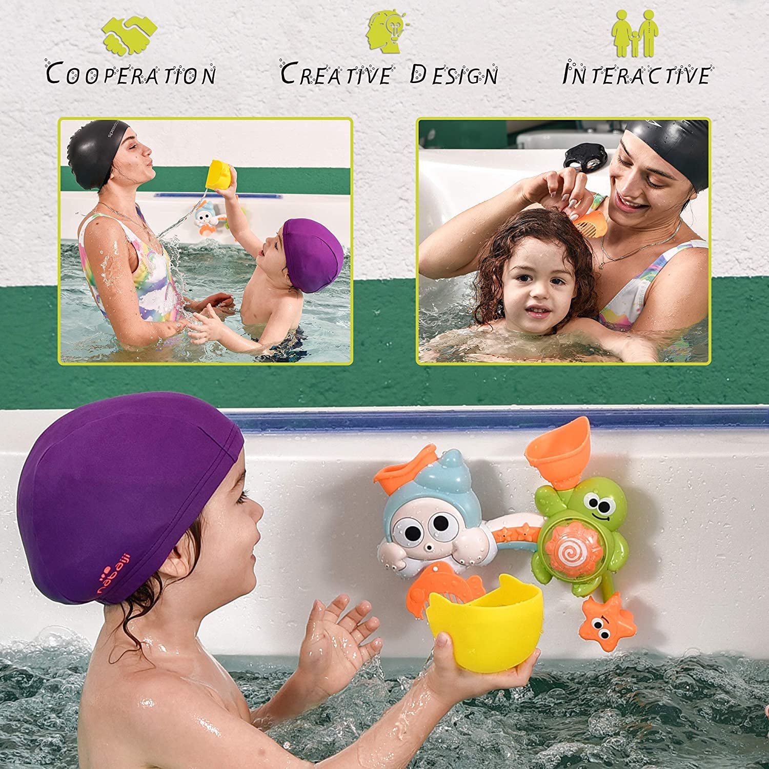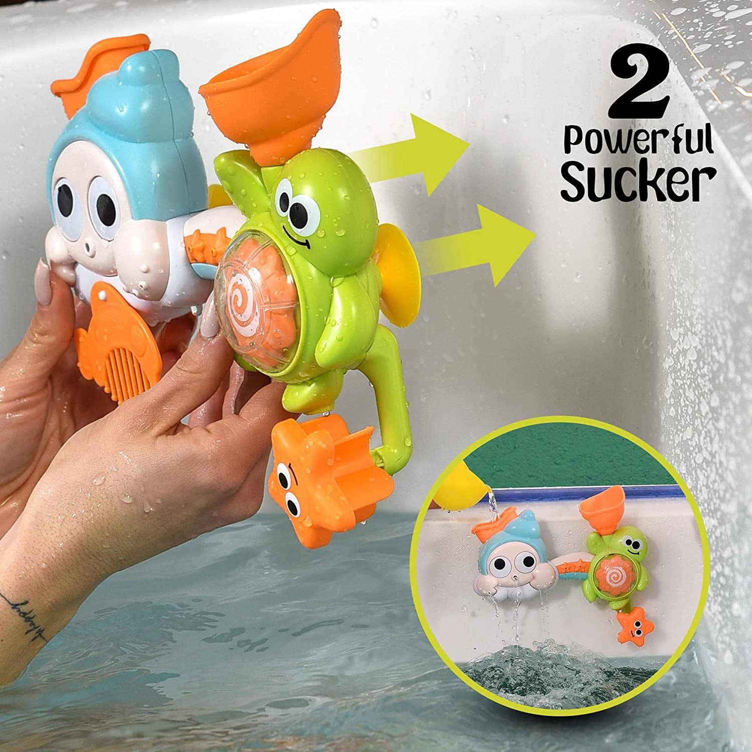- ENTERTAINING DESIGN: The bathtub toys for toddlers (age 3-5) feature an amusing waterfall station type design with other engaging elements like a rotating gear. pipe outlets. and big rotating eyes to make your child squeal with delight!