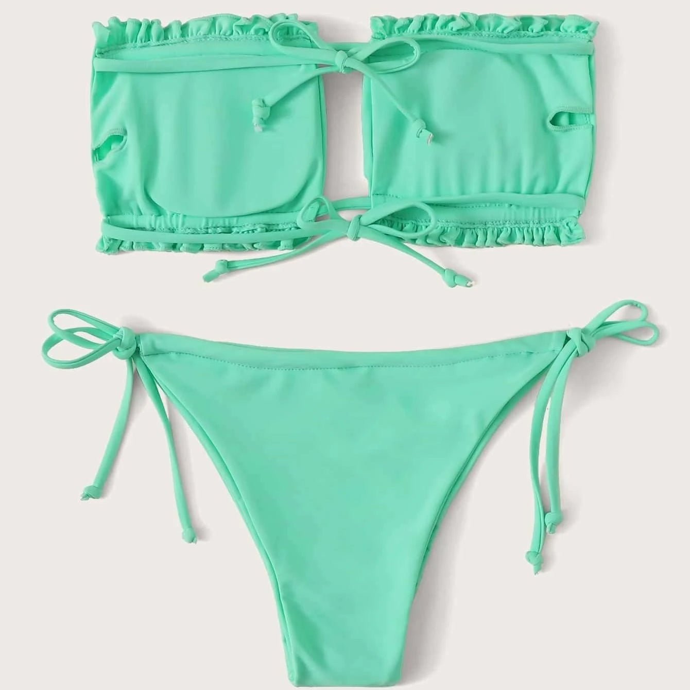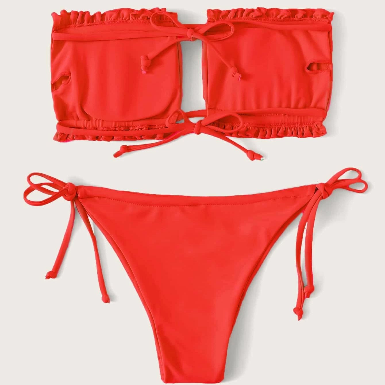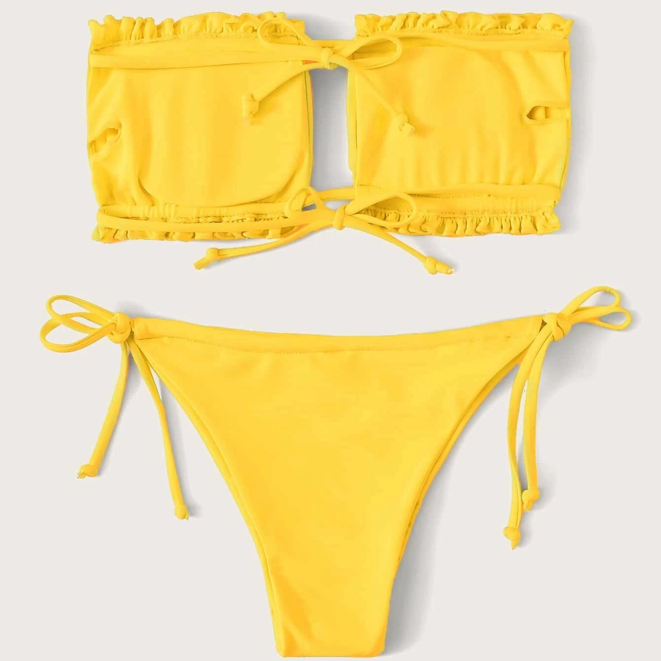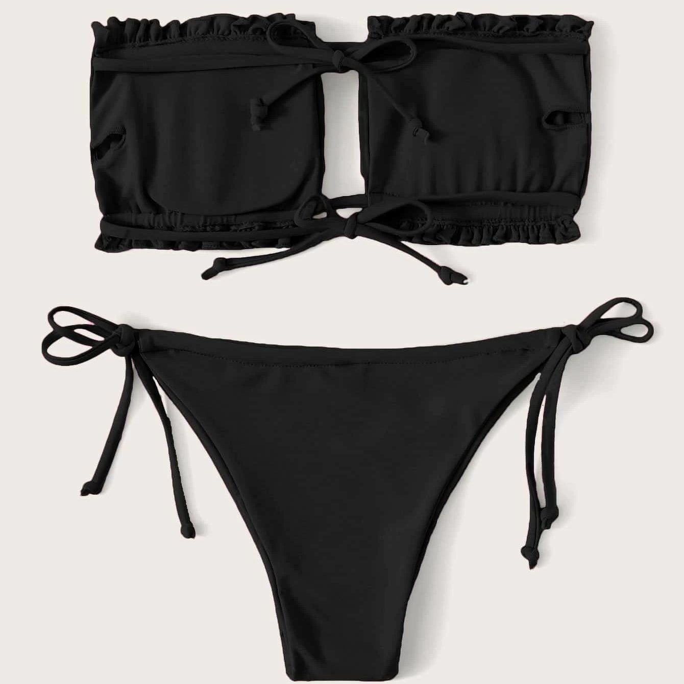 30 reviews for Frill Trim Bandeau Tie Side Bikini Swimsuit