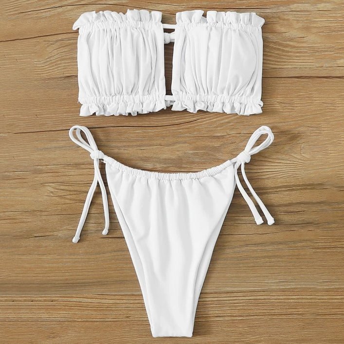 Frill Trim Bandeau Tie Side Bikini Swimsuit