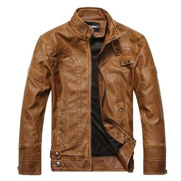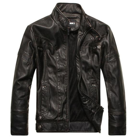 High Quality Fashion Leather Jacket Men PU Leather Stand Collar Motorcycle Jacket.