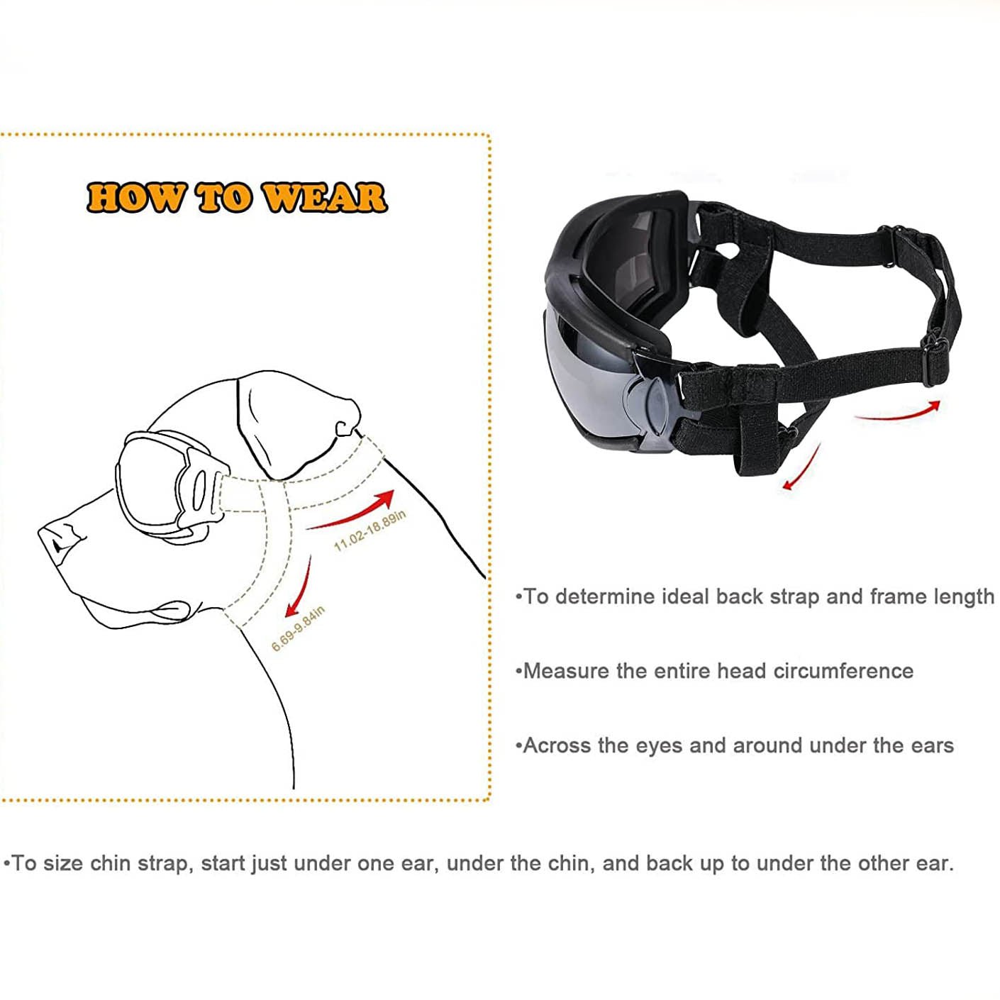 - Pet Goggles frame width 8.46″(21.5cm)