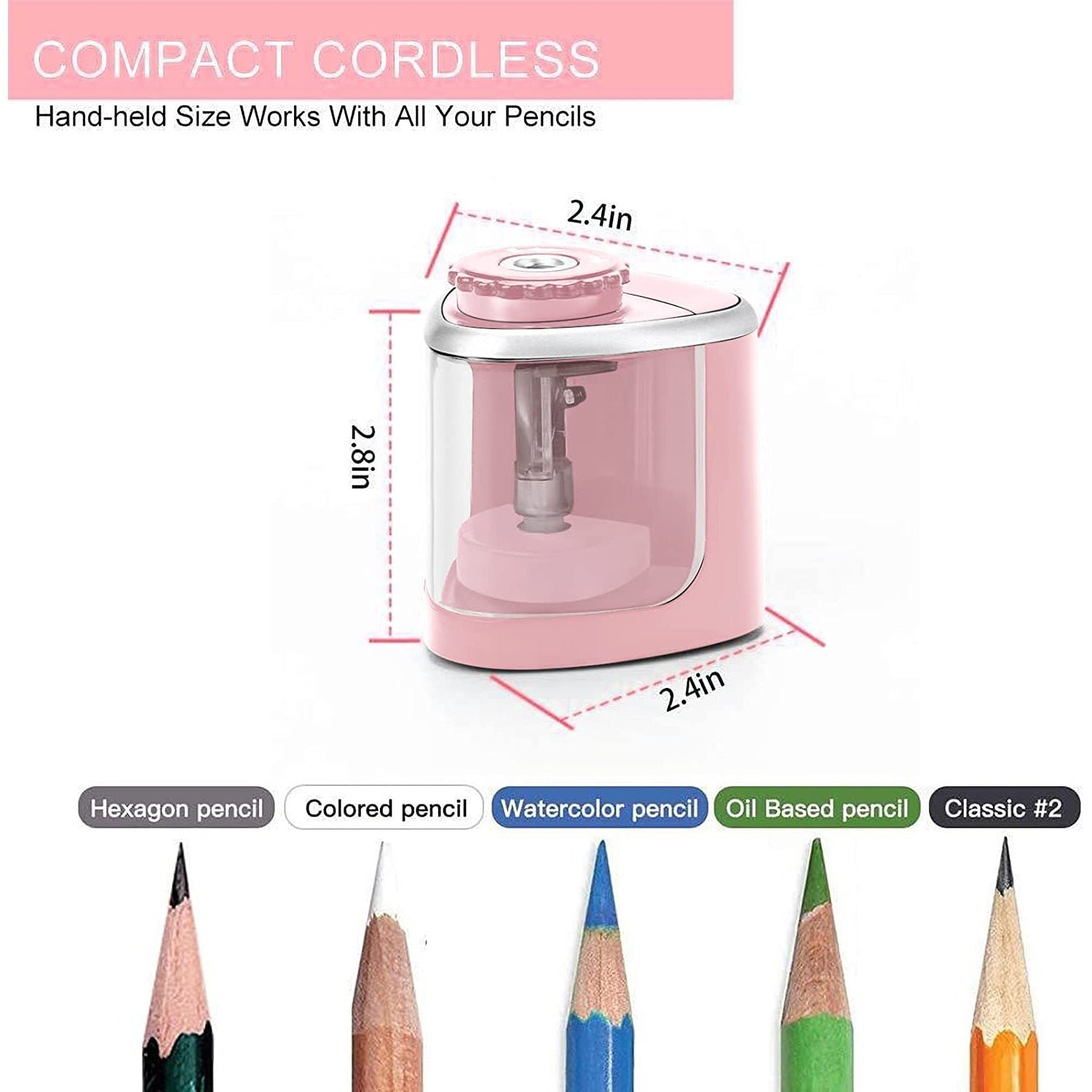 - Mini Pencil Sharpener Compact Size: The compact design and proper size make the pencil sharpener a real space saver. It is also very portable. an ideal choice for artists. students. professors. engineers. architects. and fashion designers of most ages. making drawing. writing. and coloring much easier.