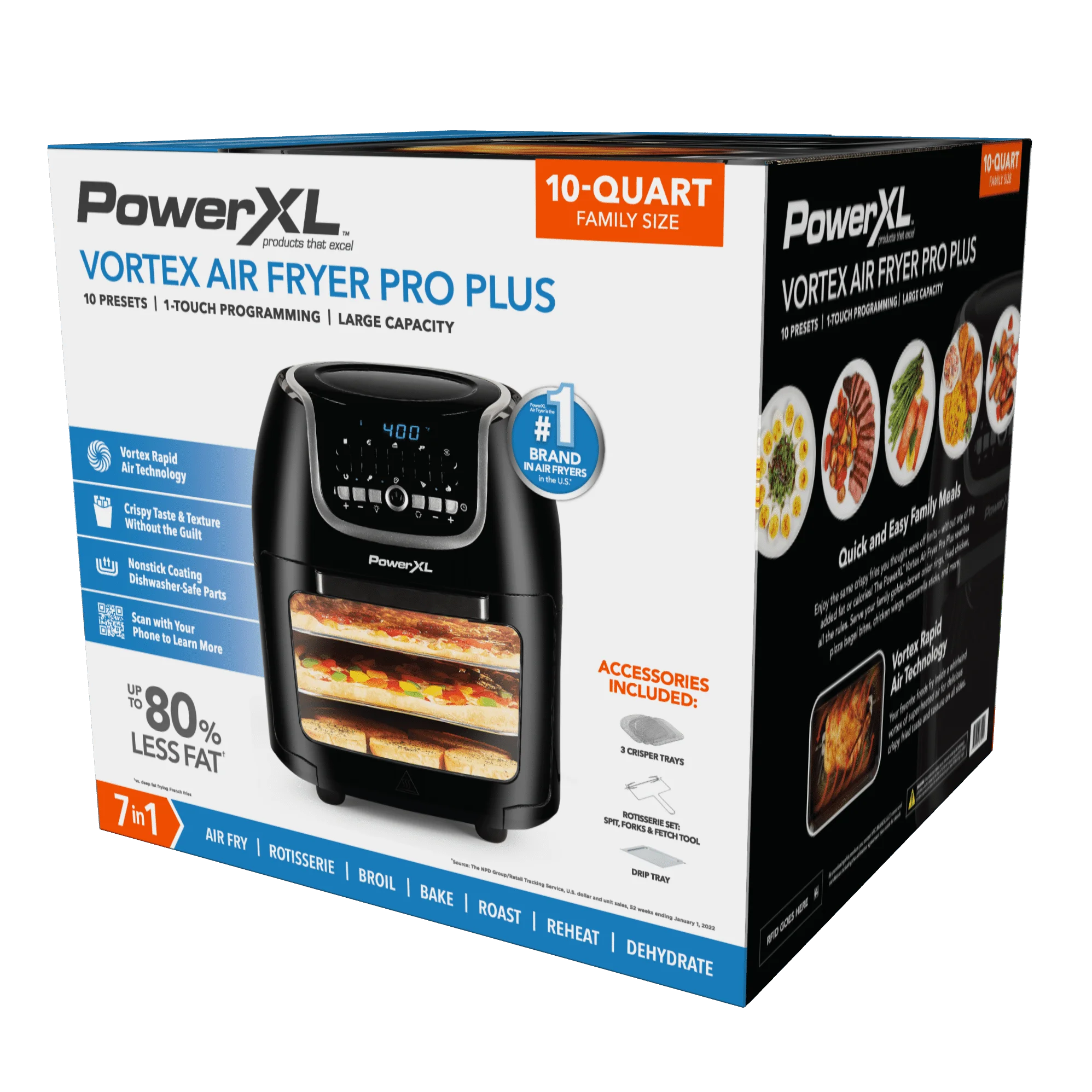 Freidora de aire PowerXL Vortex Air Fryer Pro Plus con capacidad de 10 cuartos, color negro, 1700 vatios (negro)