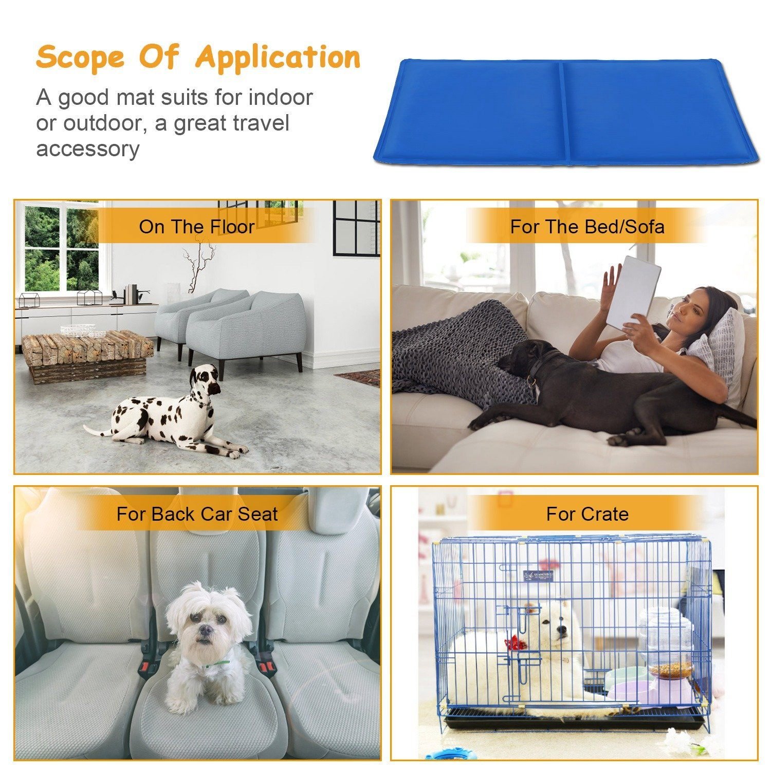 How do you solve the problem when your pet feels hot in summer? Feed him water? Or give him a shower? Would you want to protect furniture. floors or car back seat from danger? Our pet cooling mat will help you. This pet cooling mat is made of pressure activated gel and composite pvc. which is automatic rechargeable cooling and durable. It doesn’t require water. electricity or refrigeration to get cool. only need 3 hours of non-use. Avoiding overheating and dehydration for hot pets. feel cool and comfortable in hot weather.