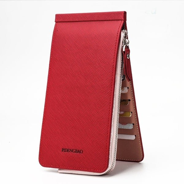 - 20 x 10x 2 cm / 7.87 x 3.93 x 0.79 inch (L x W x H). 25 x Card Slots + 1 ID Window + 1 x Large Zipper Pocket. Can be placed with iPhone 7 Plus . larger bills . checkbook and multi cards . paper money. and so on.