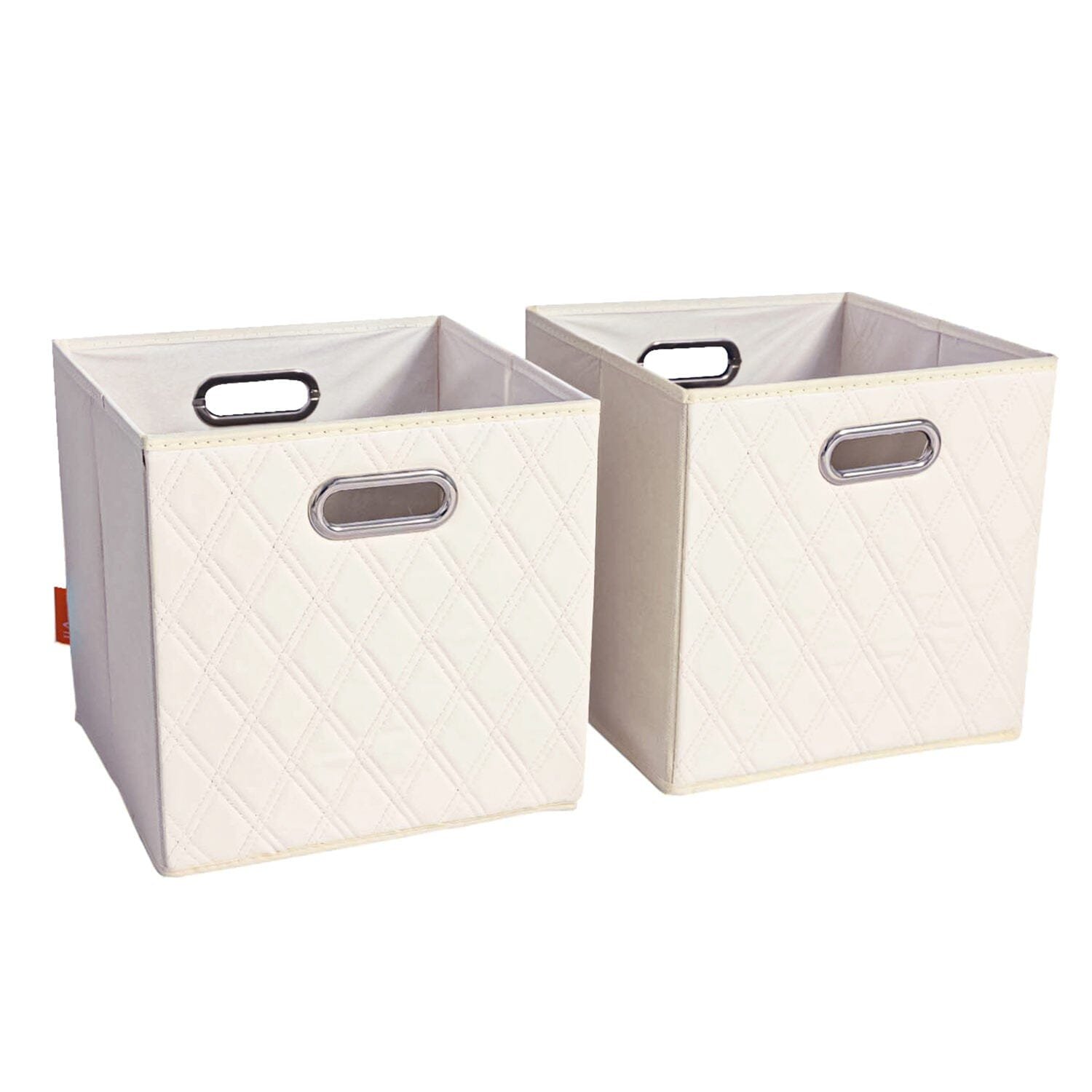 Set of 2: 11-13″ Foldable Diamond Patterned Faux Leather Storage Cube Bins