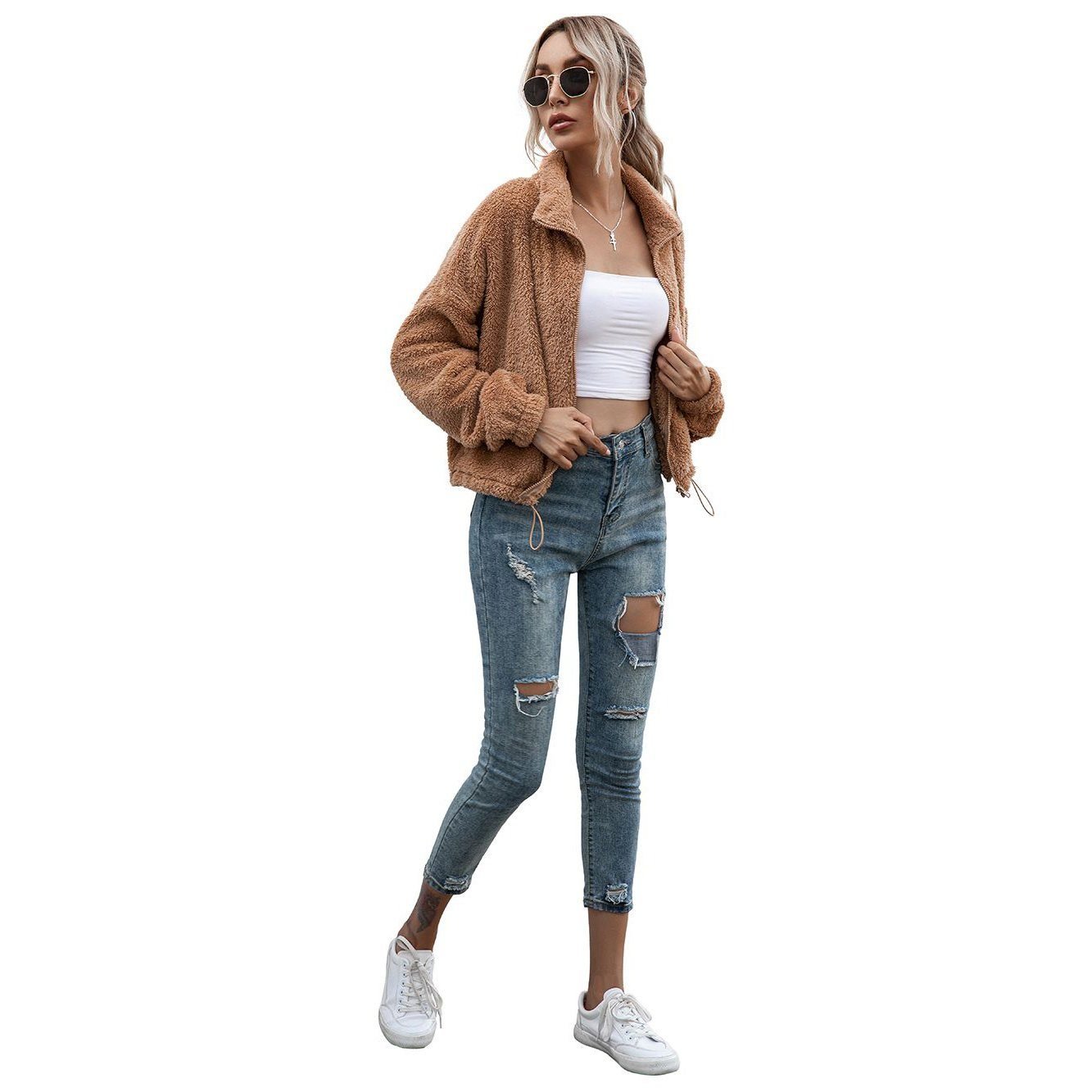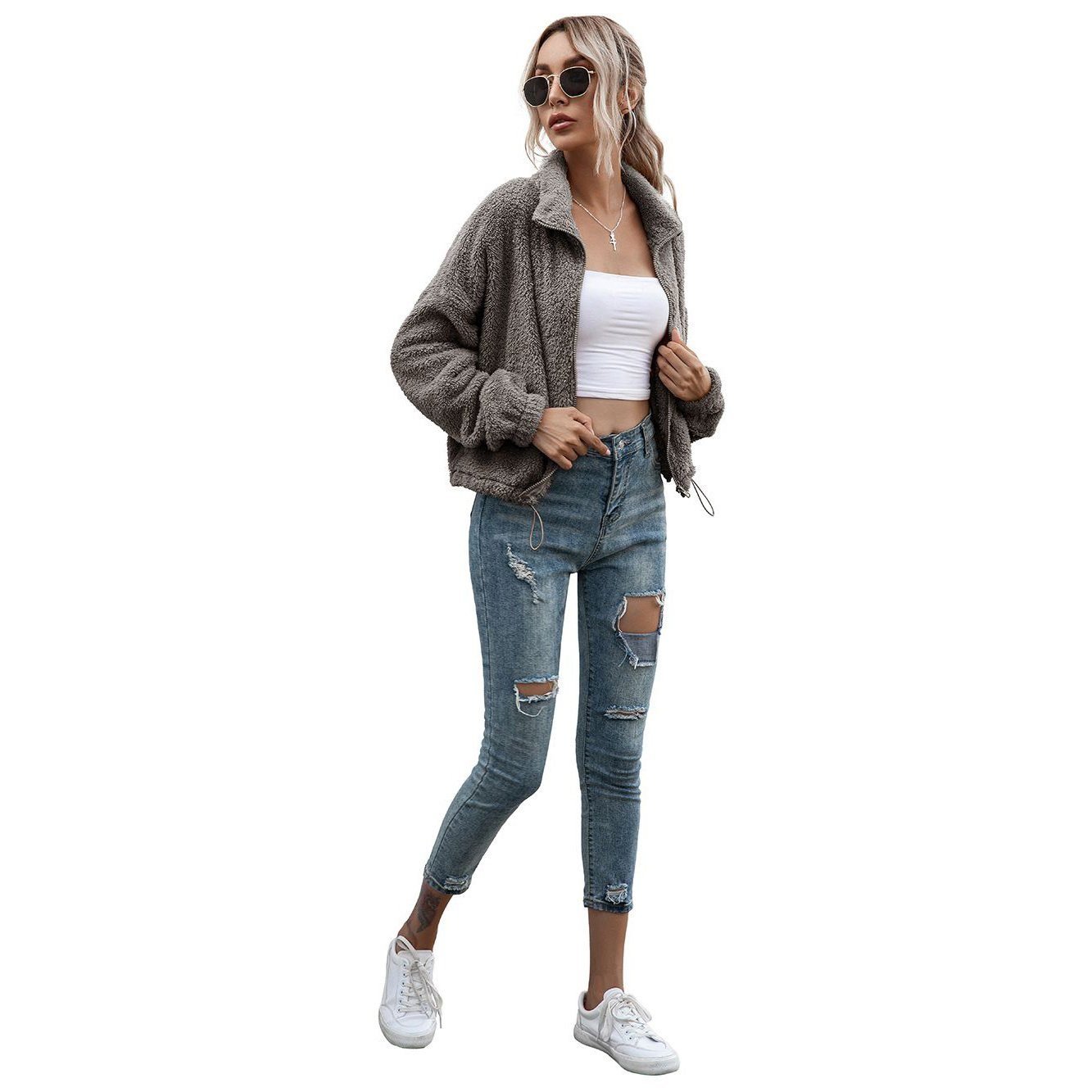 15 reviews for Solid Drawstring Hem Crop Teddy Jacket