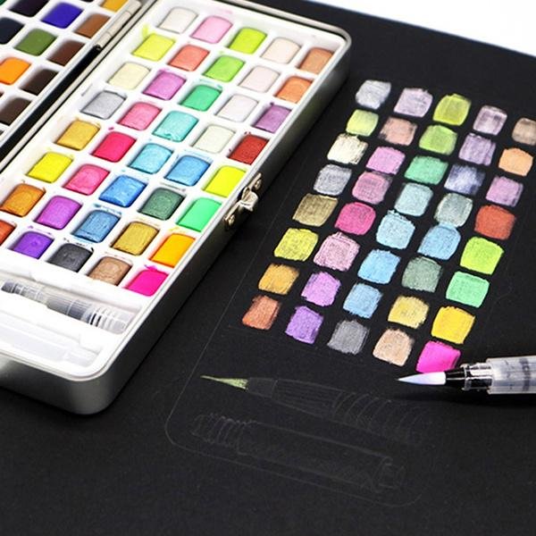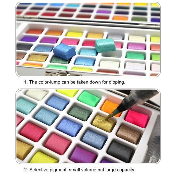 Solid Watercolor Pigment Set Neone Metallic Pearlescent Watercolor Paint for Drawing Art Supplies.