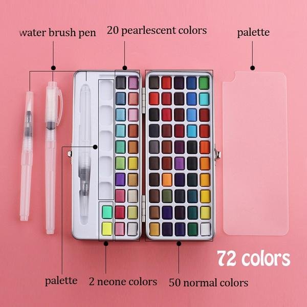 - 72 Colors: 50 normal colors + 20 pearlescent colors + 2 neone colors + 1PC water brush pen
