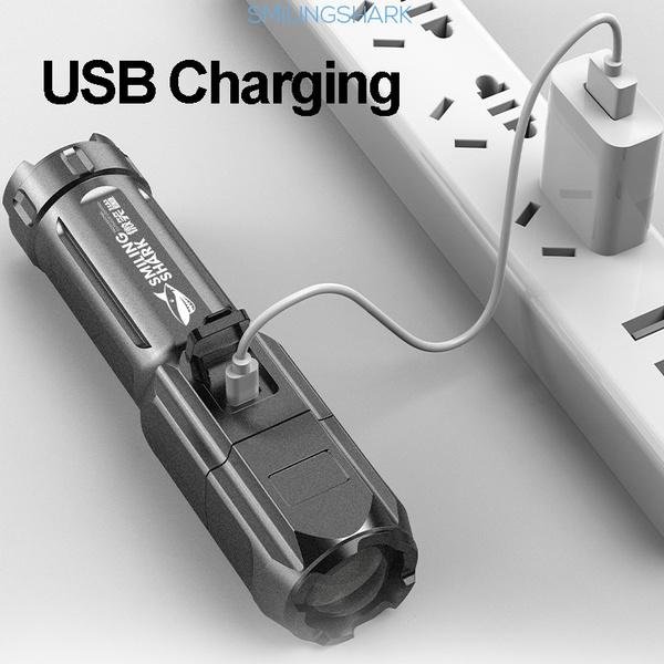 Super Bright ABS Strong Light Focusing Led Flashlight Outdoor Portable Home Built-in Battery Rechargeable Multi-function Torch.