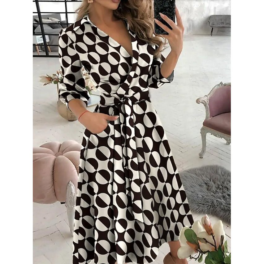 Women’s A Line Dress Midi Dress Tie dye Letter printing Butterfly print Big wave point Small dots Diamond printing khaki Sky Blue Red Long Sleeve Print Butterfly Pure Color Lace up Pocket