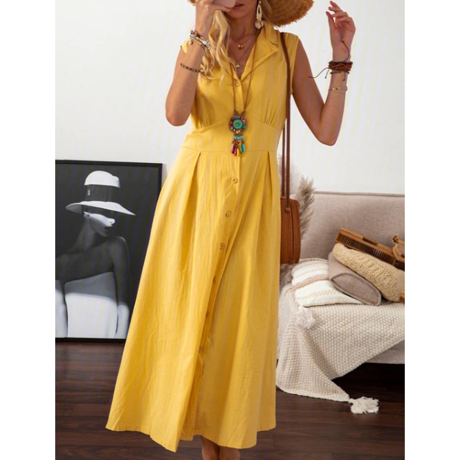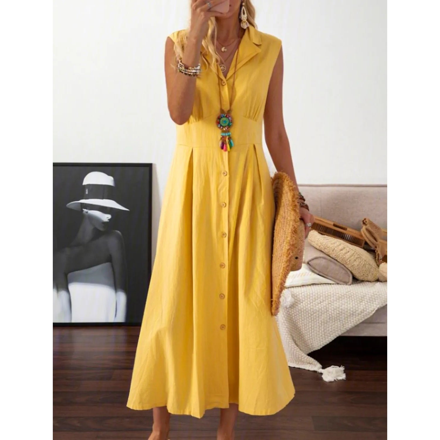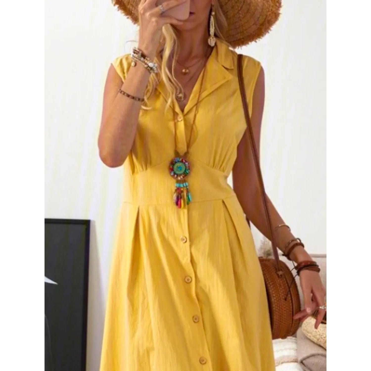 Women’s A Line Dress Midi DressSleeveless Pure Color Button Spring Summer Shirt Collar Casual.