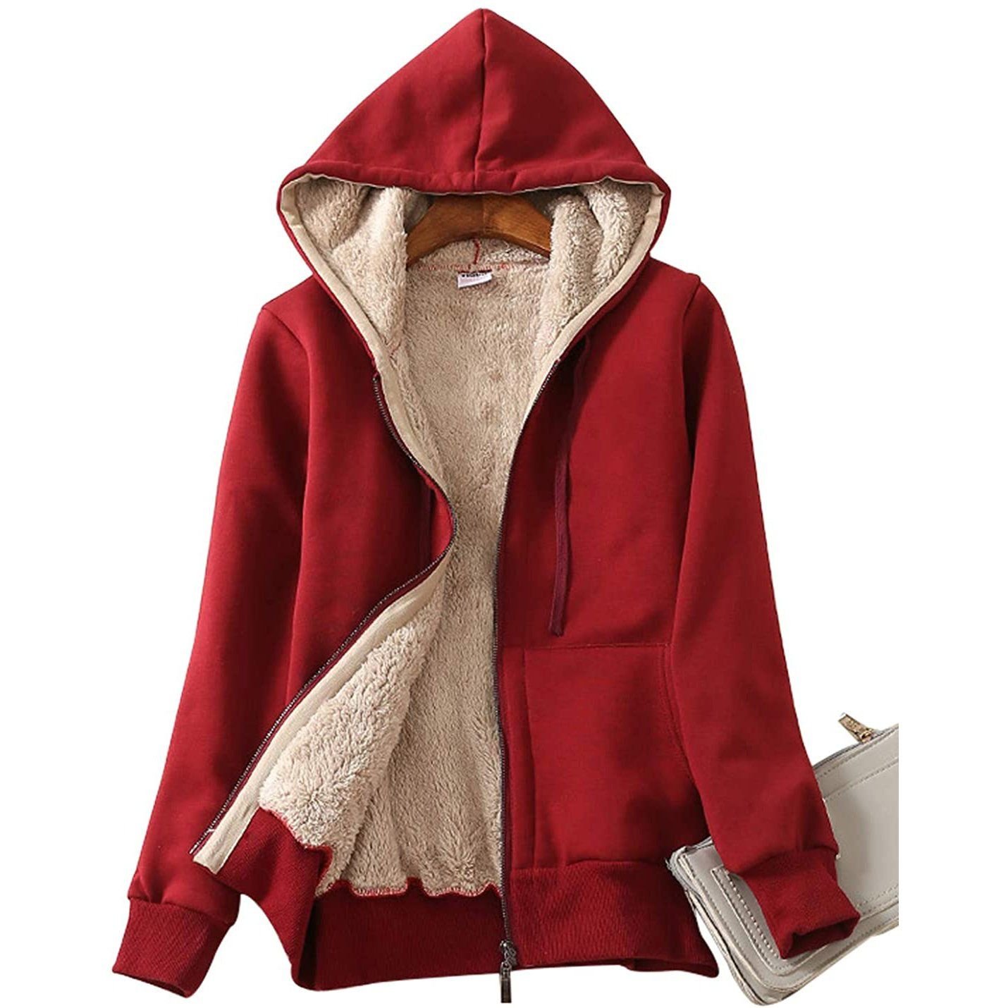 Women’s Casual Winter Warm Sherpa Lined Zip Up Hooded Sweatshirt Jacket Coat.